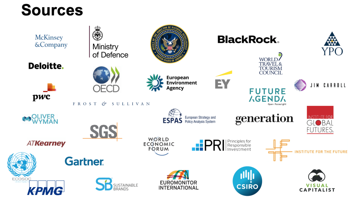 I decided to find out, and set our research team to look at what thirty large and influential organizations — think tanks, corporations, government agencies, consultancies, and more; across sectors and around the world — were thinking.