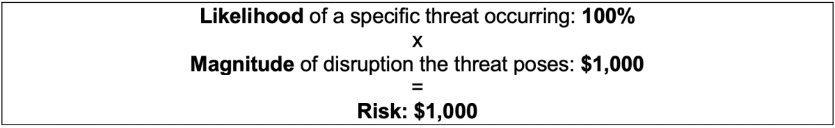 But the model above is incomplete. It identifies bad things that could happen, certainly, and it tells you how expensive the outcome will be if they do. But it doesn’t account for vulnerability.