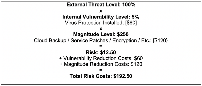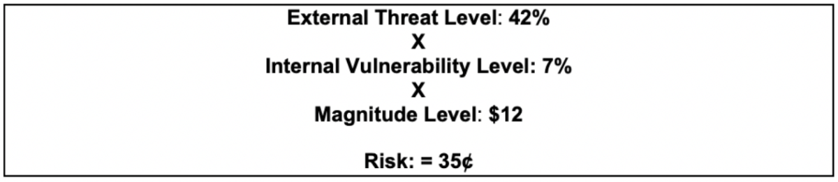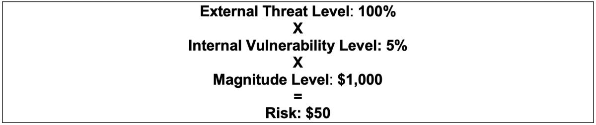 Unlike Likelihood – an external phenomenon not in your control – vulnerability is internal, something you can manage. (Magnitude is a combination of factors. Some costs of damage may not be in your control while, as we’ll see below, there are ways to control and minimize magnitude.)