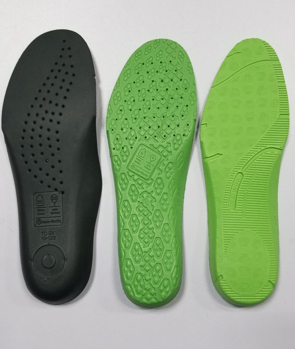But algae harvesting goes beyond simply replacing an oil-based product with a natural one. Algae is a critical part of the carbon cycle, soaking up atmospheric CO2 during photosynthesis. When algae is used, the oil it replaces need not be pumped or refined, and the algae both takes up and – once made into footwear – sequesters the carbon for years.[23] In all, according to manufacturer Bloom, algal foams have “40% less impact on the environment than purely petroleum-based equivalents. They also require 35% less energy to process and produce.”[24]
