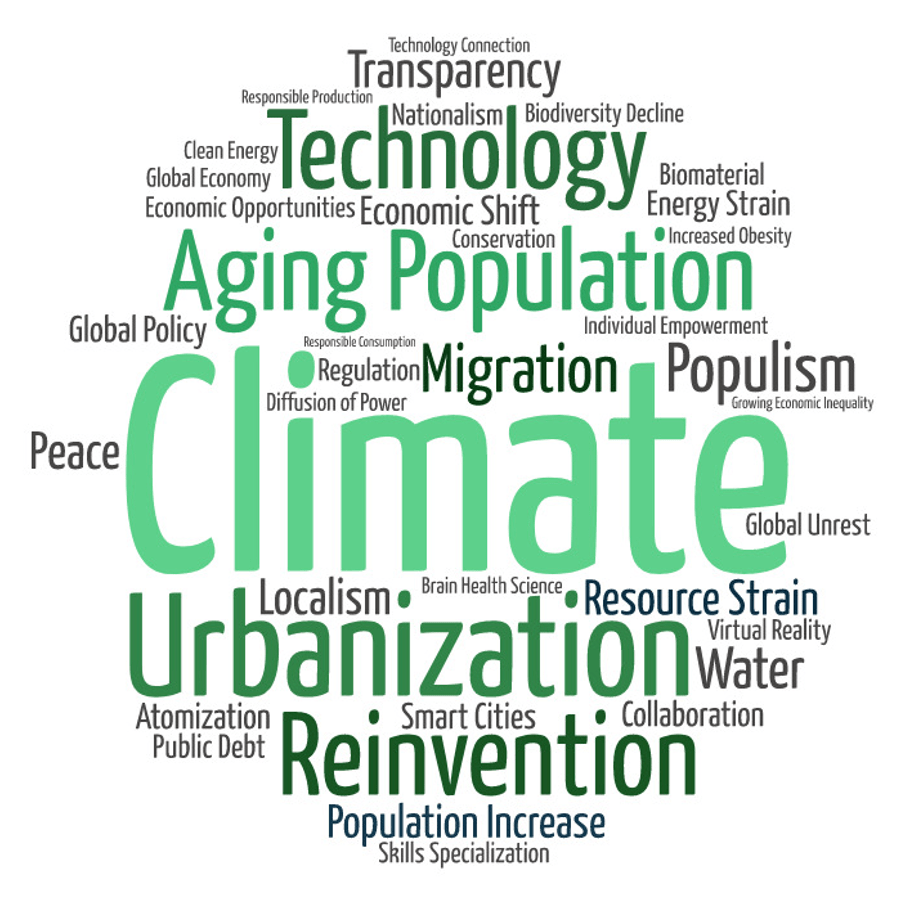 This year, the five top risks reported in the World Economic Forum Global Risks Report (WEFGRR) were all related to the environment, an unprecedented finding. This is consonant with our own proprietary research – a survey of 30 large and diverse organizations, 90% of which are not focused on sustainability. As we reported, six of that group’s top-ten Global Megatrends were related to sustainability, with Climate Change ranked #1 – an eerily similar outcome to the WEFGRR.