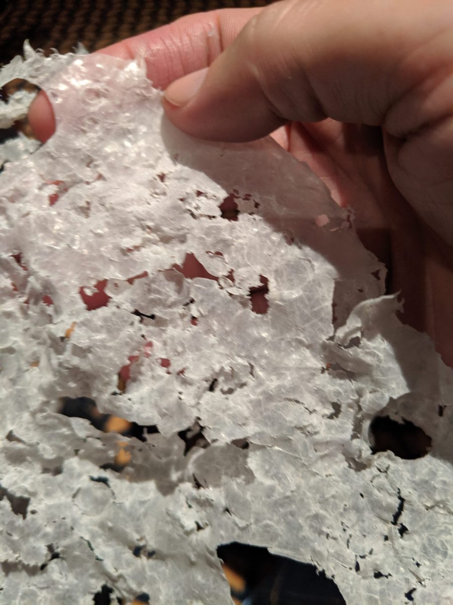 Let’s take the condition of the plastic involved. Currently a company can manufacture a ton of pristine plastic objects that happen to shred easily into shrapnel-like particles in the environment. Perhaps they’re designed for boats and generally end up in a waterway. And these fragments may complete their cycle in the digestive tracts of marine animals and, ultimately perhaps, in humans.