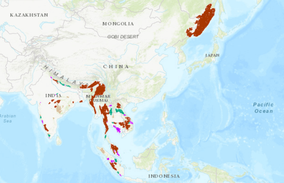 (5) TCL boundaries are defined either where habitat ends with no suitable habitat within 4 km for the tiger to disperse to, or at country or ecoregion boundaries. [Source: DataBasin.org]