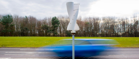 Capture Mobility prototype roadside wind turbine. Photo source: Scottish Funding Council.