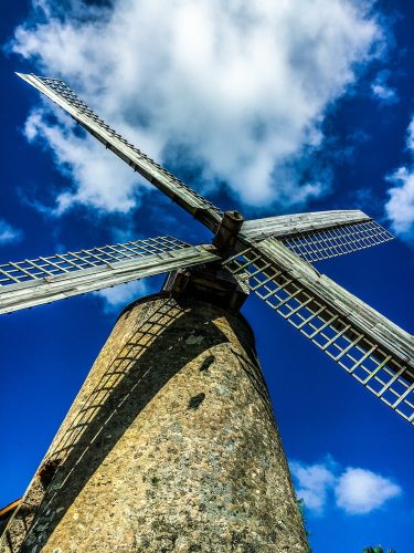 The quaint windmills of yesteryear still dot the Dutch countryside. Huge white tower-and-tine jobs now pepper the fields and plains. There are even small pinwheels on rooftops, capturing the uneven urban breezes.