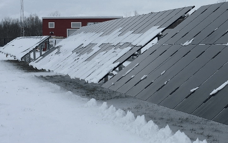 But this doesn’t tell the whole tale. Horizontal panels, wherever they’re placed, lose power when all or part of their surface becomes obscured by dust, dirt, pollen, sand or snow. Such panels may be covered in snow for weeks or months while, in desert regions such as the Sahara mentioned above, or even the New Mexican landscape near Los Lunas, sand and dust storms pose a serious problem.[5]